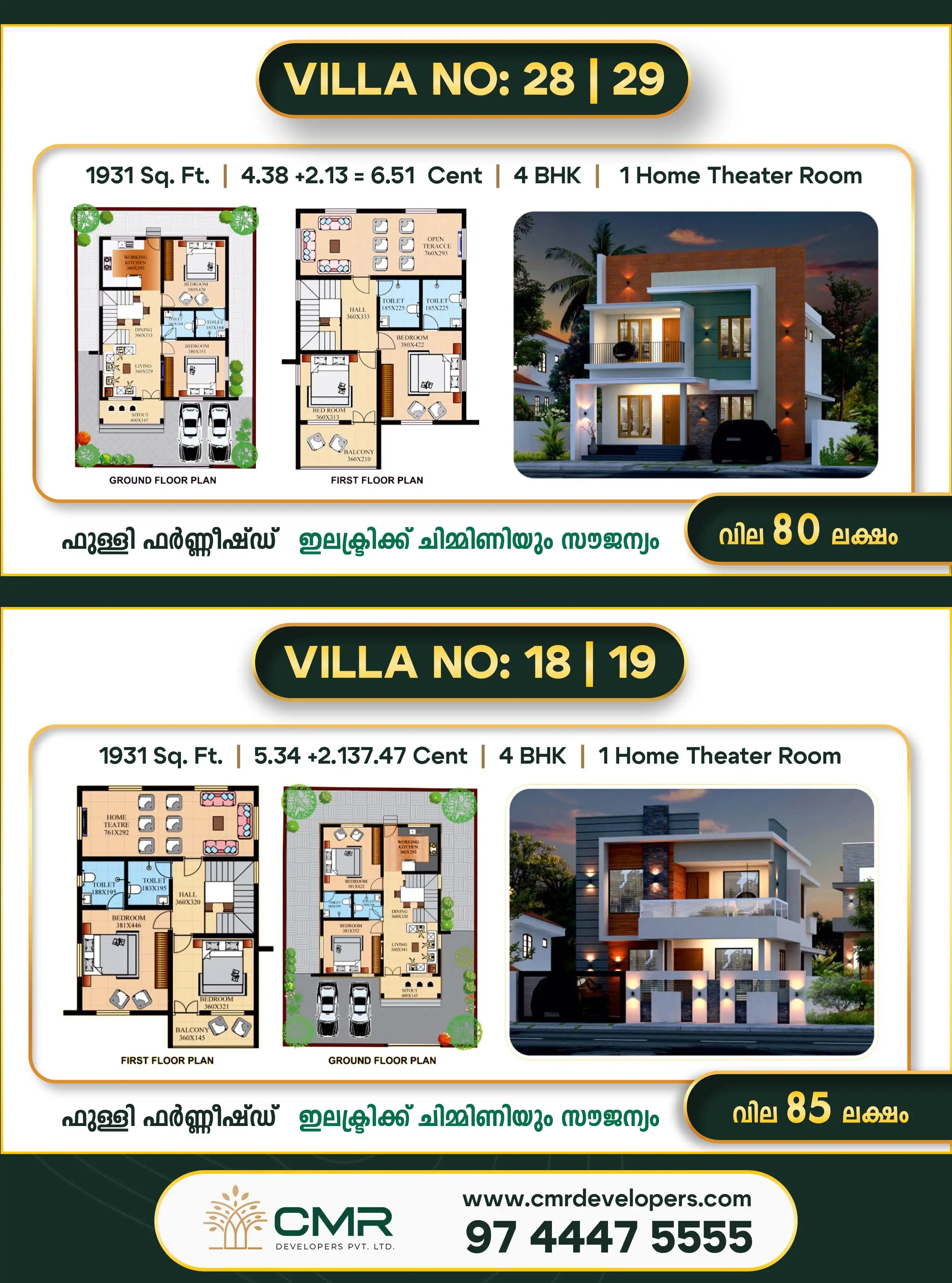Discover luxurious living with CMR Villas, the best villa builders and developers in Kannur. All projects of CMR are built amidst greenery without compromising the comforts and facilities of town living. CMR Group is the leading professional villa maker of Kannur with strong ethical foundations and time tested credibility. As one of the leading villa construction company in Kannur, CMR Builders has been transforming the cityscape with our prestigious villa projects.